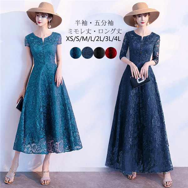 ロングドレス 母親 結婚式 レース パーティードレス ミセス向けドレス 演奏会用ドレス 袖付き 大きいサイズ ワンピース 大人 上品 フォーマルドレス ミセス フォーマル ピアノ 発表会 XS ドレス