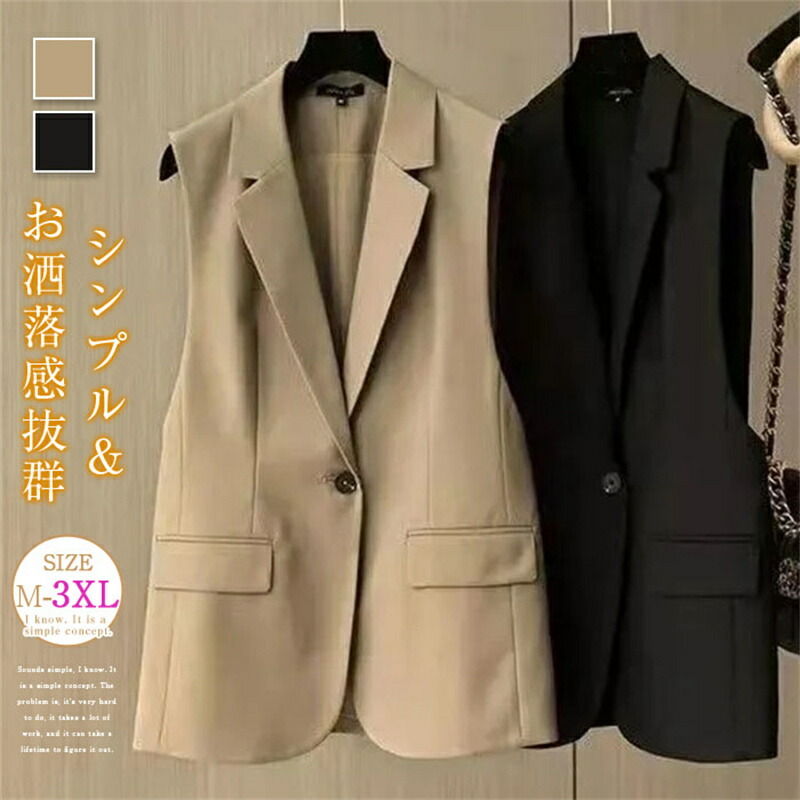 ジレ ベスト レディース ノースリーブ トップス アウター ロングジレ テーラードベスト 前開き 羽織り オフェス きれいめ カジ 通勤