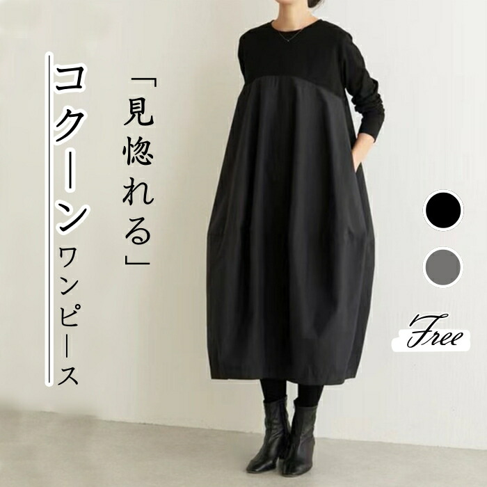コクーンワンピース ワンピース レディース 長袖 秋 冬 ロングワンピース Aライン コクーン ロング 長袖ワンピース 着痩せ 無地 オシャレ ゆったり 切り替え ポケット付き オフィス