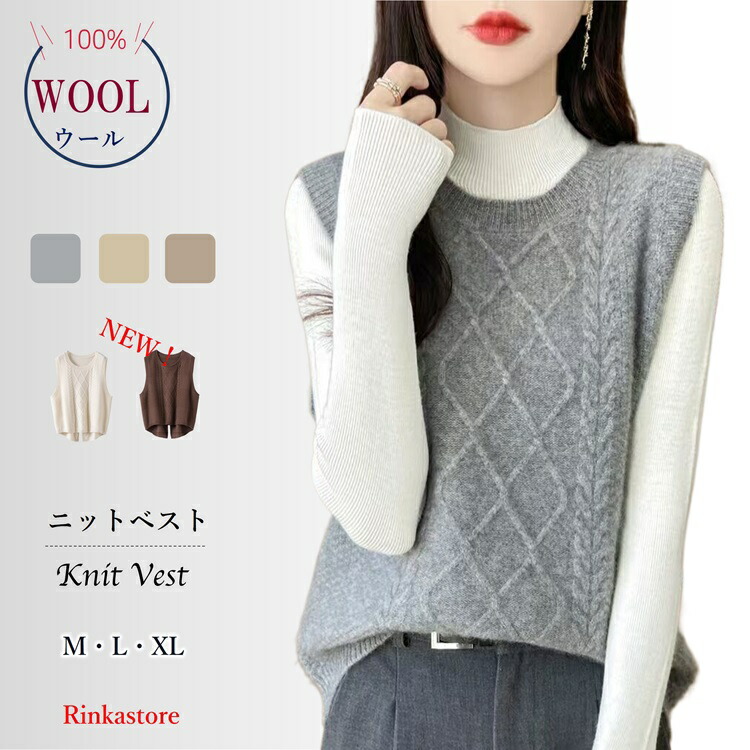 ウール100% ニットベスト ベスト ニット レディース セーター ノースリーブ 重ね着 トップス プルオーバー ニットチョッキ Vネック 春 冬 無地 大人 秋