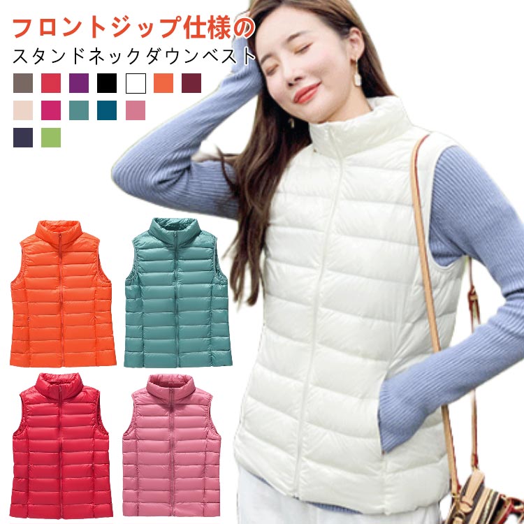 ライトダウン インナー ジップアップ ダウンベスト ダウンジャケット インナーベスト レディース 秋 立ち襟 ノースリーブ 暖かい インナーダウンベスト 冬 ハイネック 軽量 コンパクト インナ 薄手