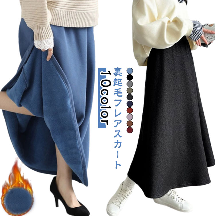 裏起毛スカート スカート あったか ロングスカート 暖かい フレアスカート 秋冬 マキシスカート Aライン ロング丈 温かいスカート 無地 ウエストゴム オフィス 裏シャ 冬