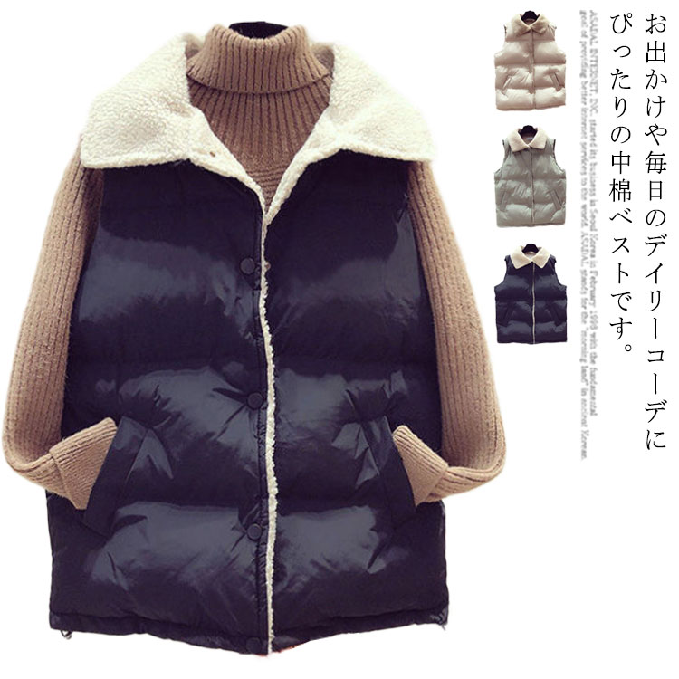 中綿ベスト チョッキ 保温 お洒落 防寒 あったか