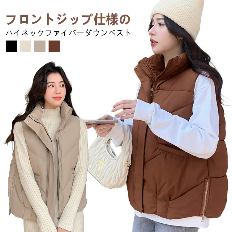 ダウンベスト レディース 大きいサイズ アウター ジャケット ベスト 中綿 ライトアウター フェイクダウン 上着 羽織り ハイネック 軽量 秋 通勤 通学 暖かい お出かけ 秋冬 ノースリーブ 無地