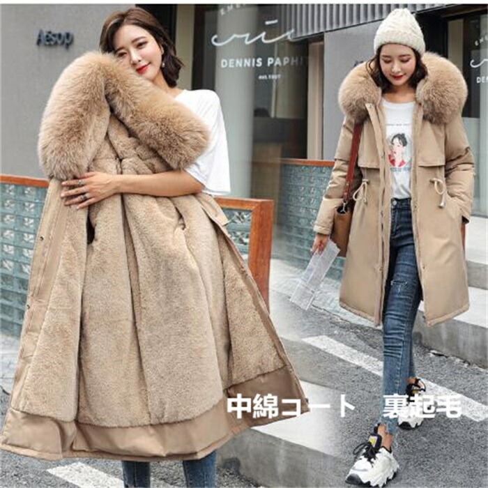 レディース 中綿コート アウター フェイク毛皮 コート 冬 裏起毛 フード付き中綿パーカー ロングコート 冬服 カジュアル 厚手 防風 防寒 暖かい
