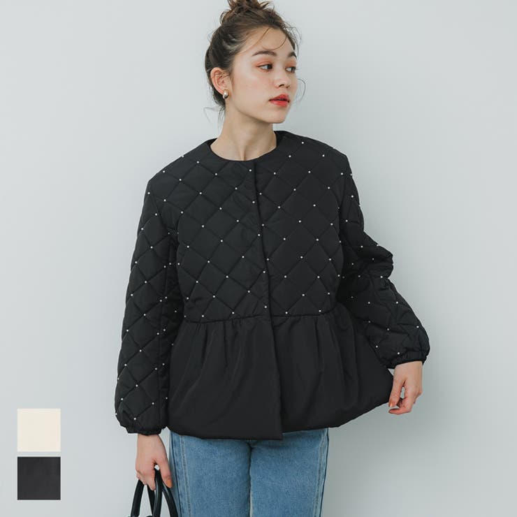 coca パールキルティングティアードブルゾン アウターダウンジャケット コート