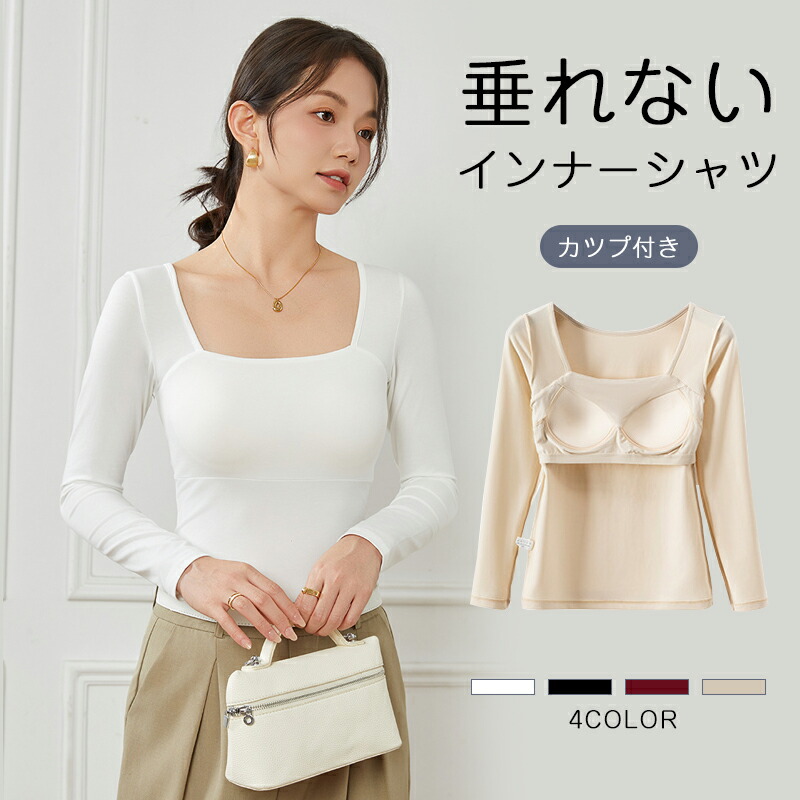 1枚1592円→2点60%OFFクーポン利用 ブラトップ カットソー キャミソール スクエアネック カップ付き インナーシャツ 長袖 タンクトップ インナーTシャツ オールインワンブラトッ 体型カバー