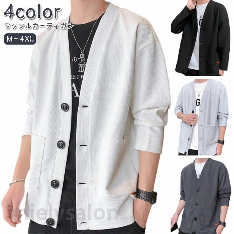 ワッフルカーディガン メンズ 前開き ジャケット ライトアウター 羽織り 長袖 無地 カーディガン フードなし パーカー ボタン留め 大きいサイズ 春 秋 コーデ 秋冬 ゆったりカーディガン ル 秋物