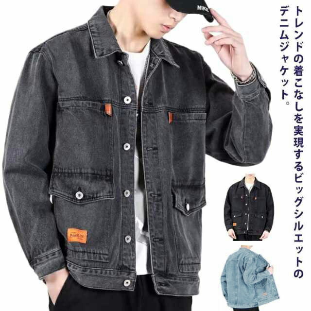 ジャン デニムジャケット メンズ 多ポケット ビッグシルエット デニム ジャケット トレロ