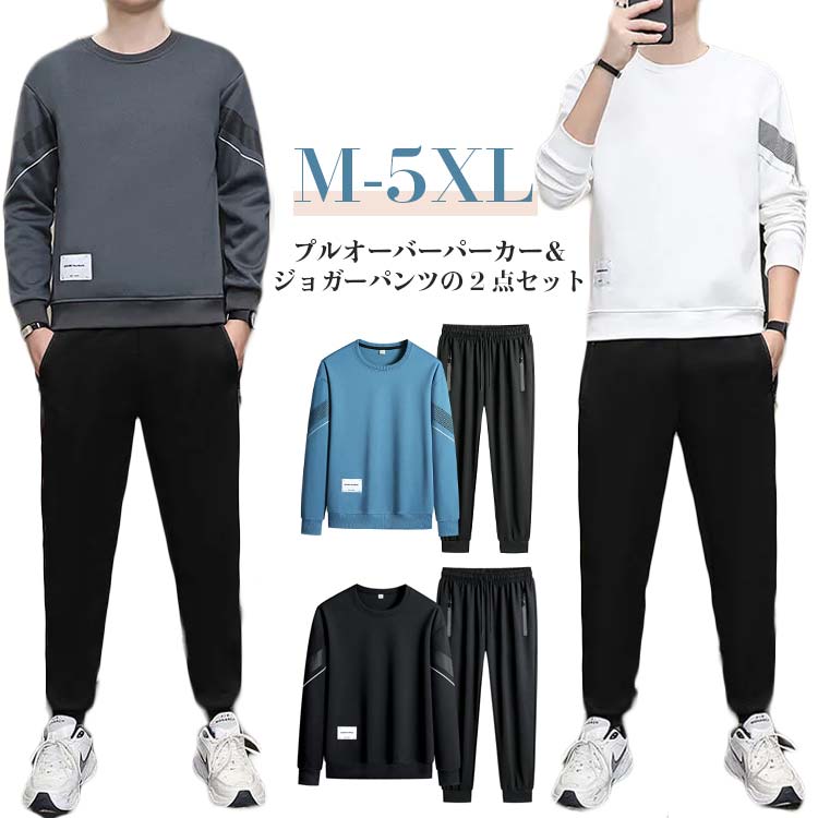 長袖 パーカー スウェットパンツ セットアップ プルオーバー メンズ スエット 上下セット 上下組 トップス 無地 重ね着風 春秋 イージーパンツ ジャ スポーツウェア