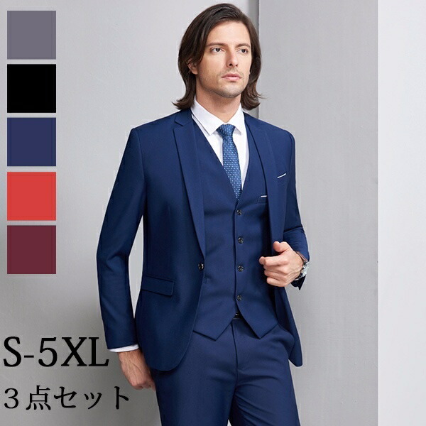 紳士服 ベスト付き メンズ スーツ ビジネス 大きいサイズ 1ツ釦 スリムバージョン 1ボタンビジネス 男性 パンツ 3点セット ワインレッド グレー 紺色 赤 黒