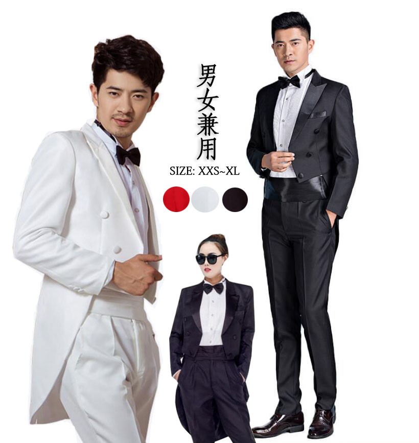 男女兼用 燕尾服 モーニングコート タキシード 4点セット 紳士服 コスプレスーツ ステージ衣装 メンズ レディース 舞台衣装 ダンス衣装