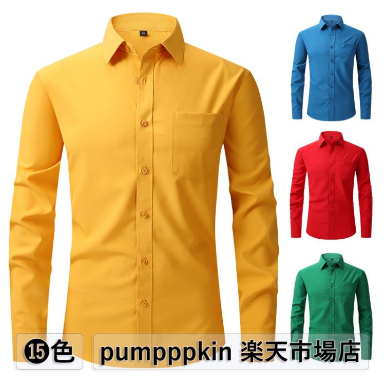 伸縮性抜群!カジュアルシャツ メンズ カラーシャツ ストレッチ素材で動きやすい ノーアイロン 形態安定 長袖シャツ 大きいサイズ イベント 学園祭 舞台ステージ衣装 ダンス衣装