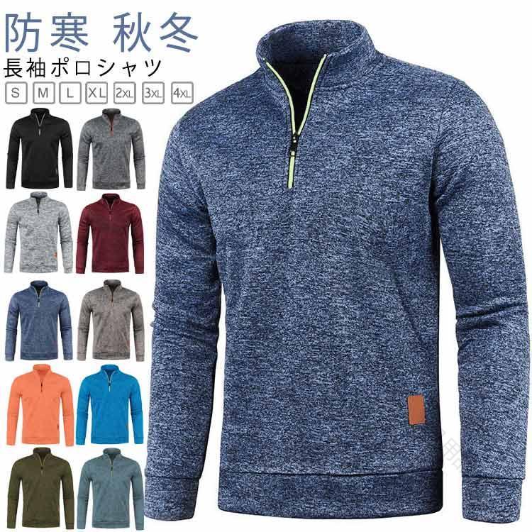 秋冬ゴルフウェア メンズ防寒ポロシャツ 厚手裏起毛シャツ ハイネック防寒 ゴルフ防寒着 ハーフジップトップス 快適着心地 スポーツウエア 秋冬ゴルフファッション 細身シルエット