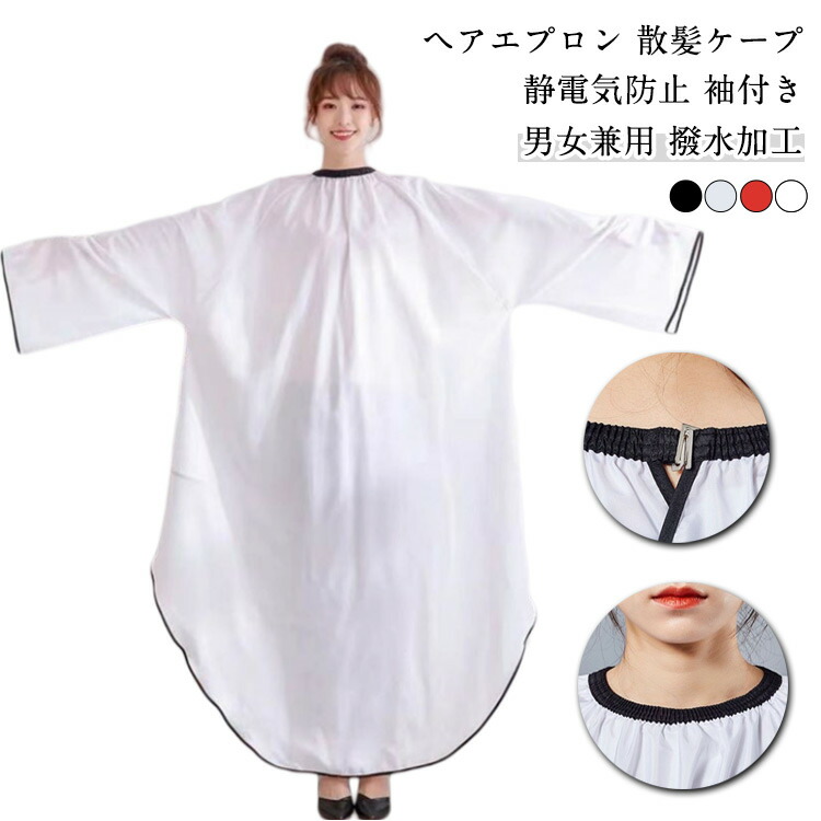 ヘアエプロン 延長された袖 散髪用 散髪用ケープ 静電気防止 散髪マント 調節可能 防水 染髪ケープ 自宅 美容院 カットクロス 毛染め 大きめ セルフカット 大人 美容エプロン