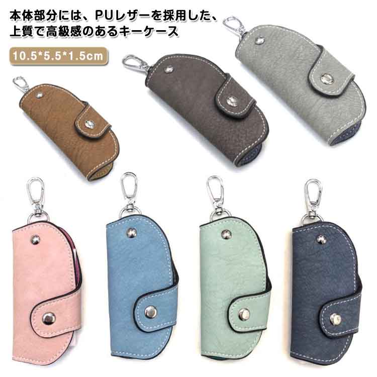 キーケース キーカバー キーホルダー 鍵ケース カラビナフック付き スマートキー ファスナー コンパクト 鍵入れ カード入れ 定期入れ 小物入れ ギフト かわいい おしゃれ PUレザー