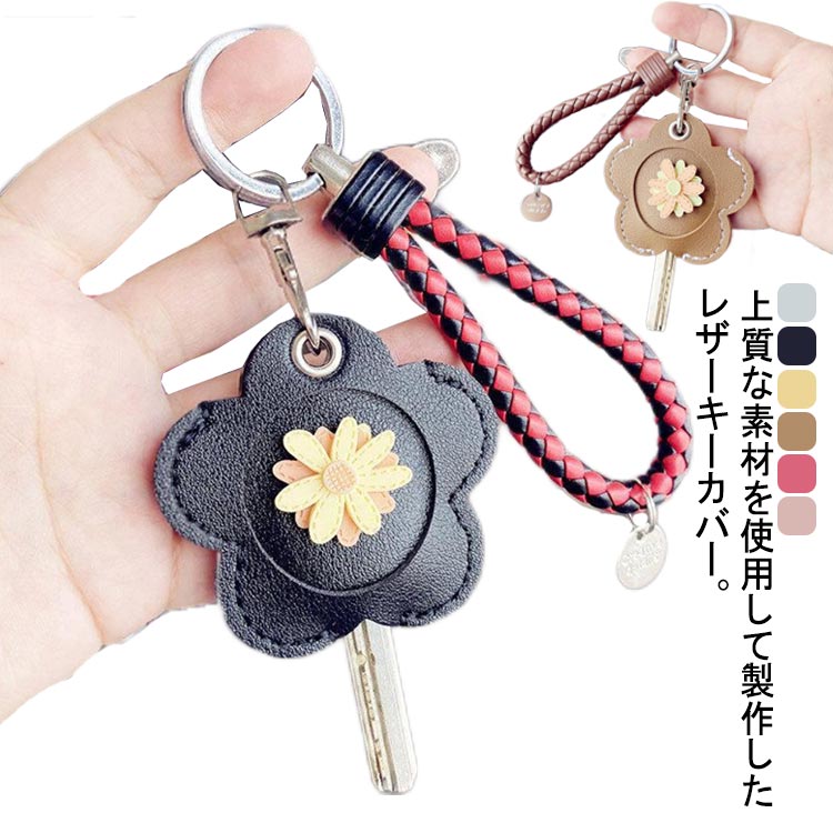 かわいい お花 本革 さくら 合皮 鍵カバー キーキャップ キーカバー キーケース キーホルダー プレゼント 可愛い お洒落 レザー