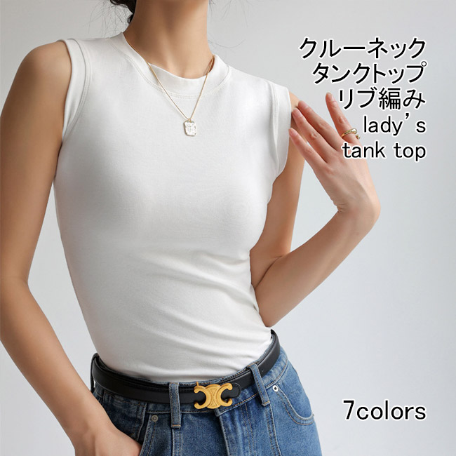 タンクトップ レディース インナー 無地 クルーネック ノースリーブ リブ編み 伸縮性 通気性 プルオーバー トップス カジュアル 柔らかい 着痩せ 着回し レイヤード 快適 春夏 女性用 シンプル