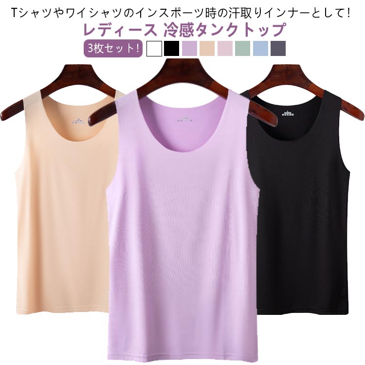 3枚セット レディース インナー 冷感タンクトップ インナーキャミソール 夏用 タンクトップ 下着 肌着 薄手 シームレス 接触冷感 アンダーウェア おしゃれ ノンスリーブ クール感 吸汗 速 涼しい