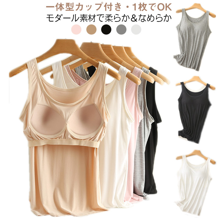 モダール素材 カップ付きタンクトップ 大きいサイズ レディース 着やせ 締め付け感なし インナー 春夏 無地 部屋着