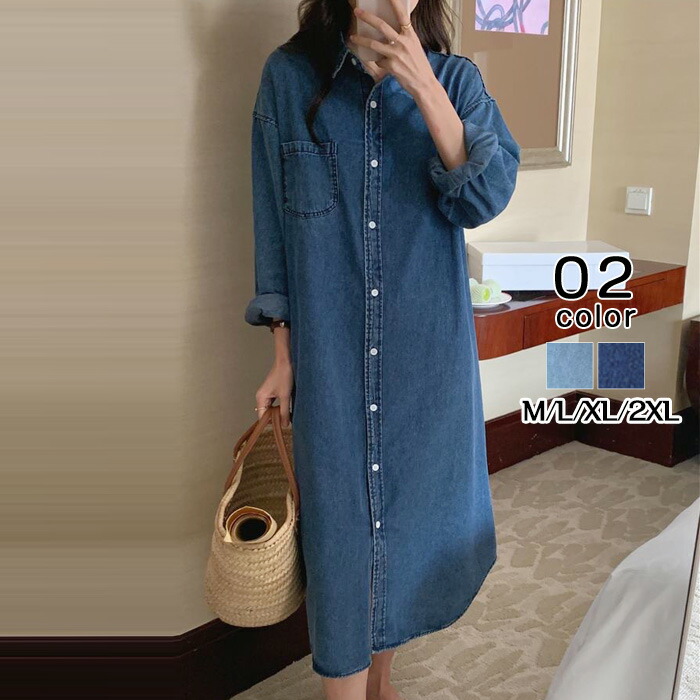 シャツ ワンピース レディース オールシーズン使える デニムシャツ トップス ロングシャツ チュニック 長袖 大きいサイズ ゆったり シャツワンピ