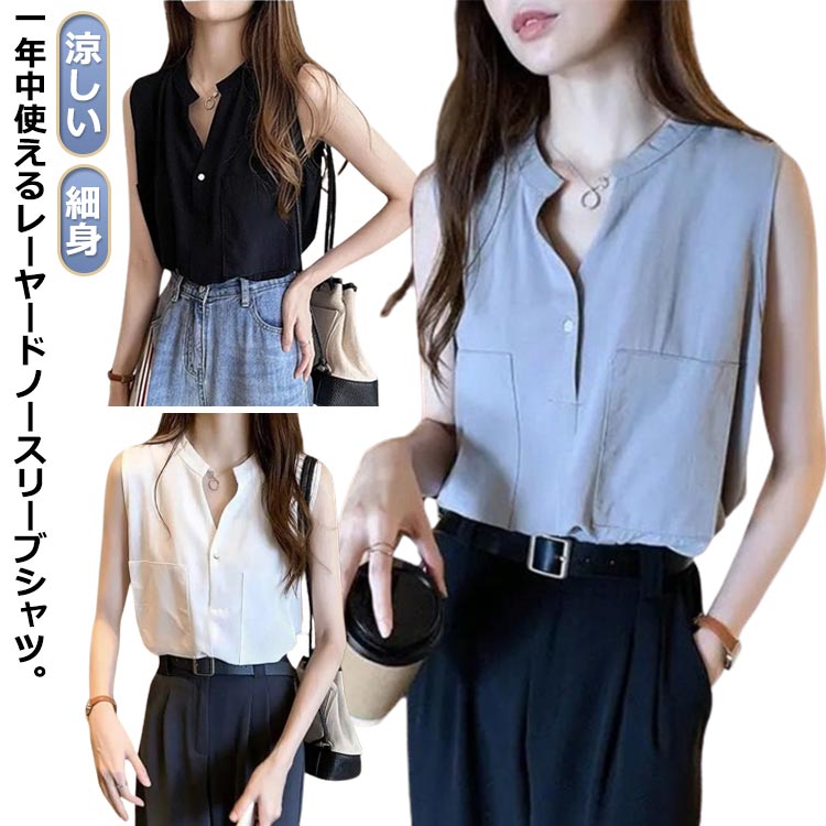 ノースリーブ おしゃれ ワイシャツ 送料無料 レディース 夏 シャツ スタンドカラー タンクトップ シャツ 通勤 通学 細身