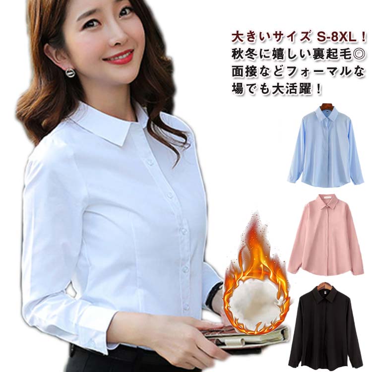 レディース 秋冬 裏起毛 長袖 シャツ 白ブラウス 面接などフォーマルな場でも大活躍!あったかい 裏フリース カッターシャツ 無地 透けない インナー リクルート ビジネス 就活