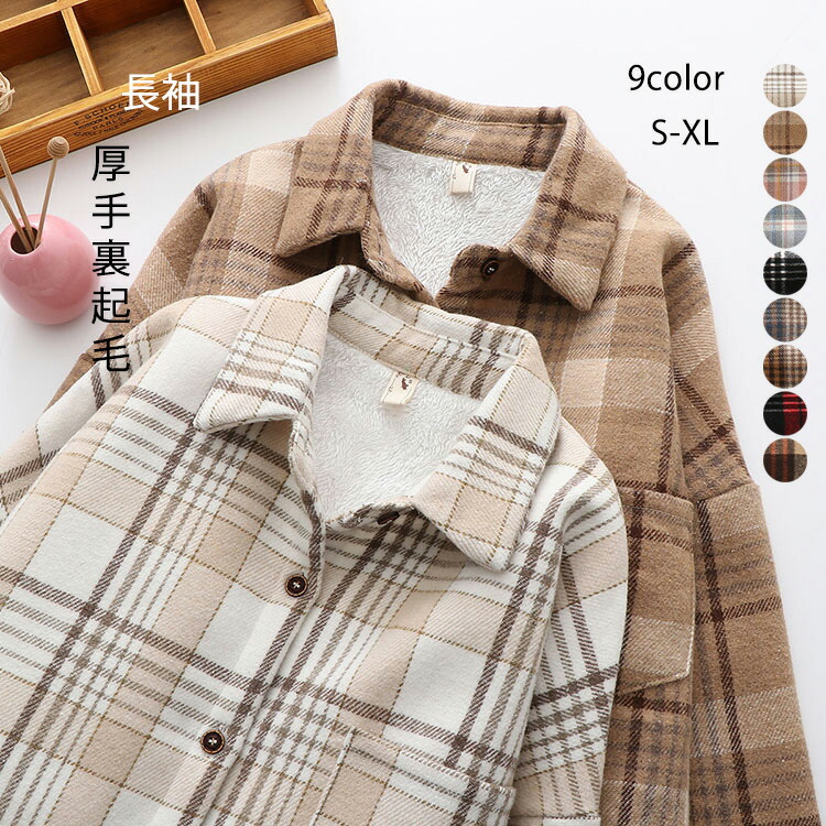 送料無料 チェック ネルシャツ 裏起毛 厚手 裏起毛シャツ シャツジャケット 秋冬アウター ボリュームスリーブ ビッグシルエット