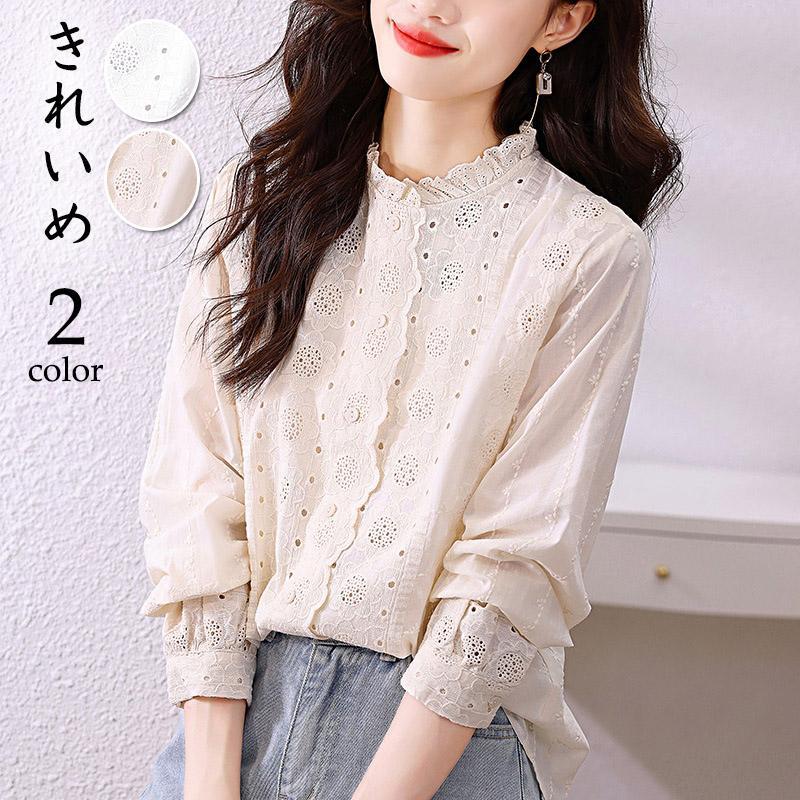 レディース ブラウス 長袖 秋 きれいめ 白レースシャツ トップス 大人 通勤 ゆったり シャツ 体型カバー カジュアル 上品 オフィス
