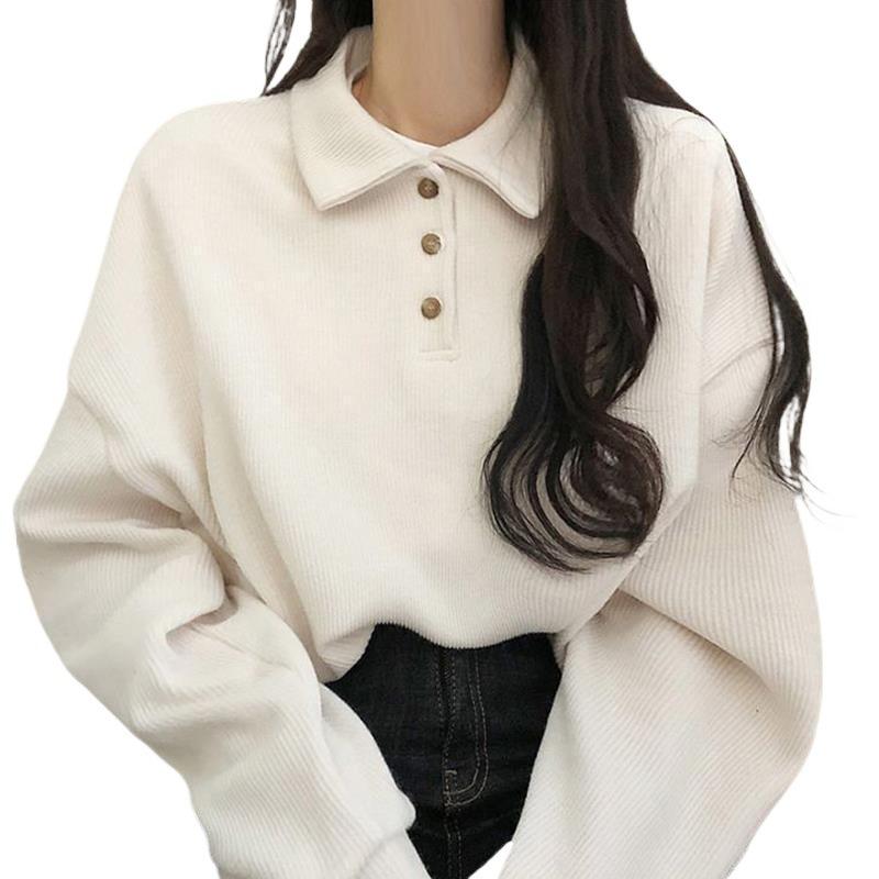 スウェット レディース 裏起毛 あったか トレーナー 長袖 POLO襟 ゆったり トップス 秋冬 ブラック アプリコット カットソー 普段使い 黒