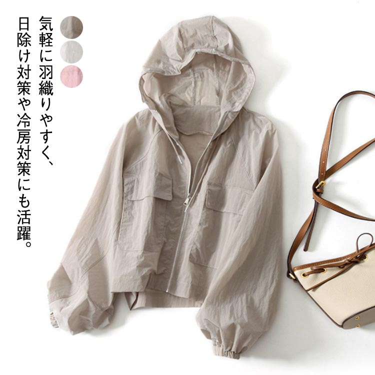 UVカット パーカー フード付き レディース UV 撥水 カーディガン 春 夏 長袖 ショート丈 ラッシュガード 薄手 前開き 無地 体型カバー ゆったり 羽織り 紫外線対策 ト ジップアップパーカー