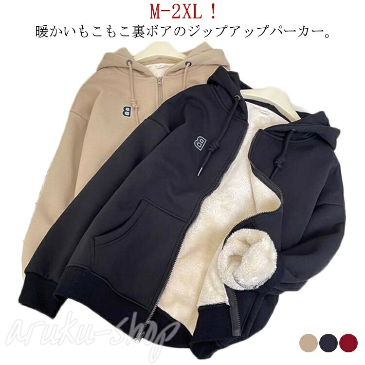 パーカー レディース メンズ 厚手 裏ボア 裏起毛 アウター ジップアップ ボア フード付き ジッパー スウェット コート 防寒着 暖 防風