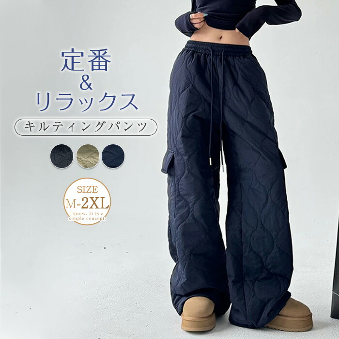 キルティングパンツ レディース キルティング パンツ 秋冬 薄中綿パンツ ワイドパンツ ウエストゴム 薄中綿 ズボン イージーパンツ ロングパンツ ボトムス カジュアル 大きいサイズ 無地 防風 大人