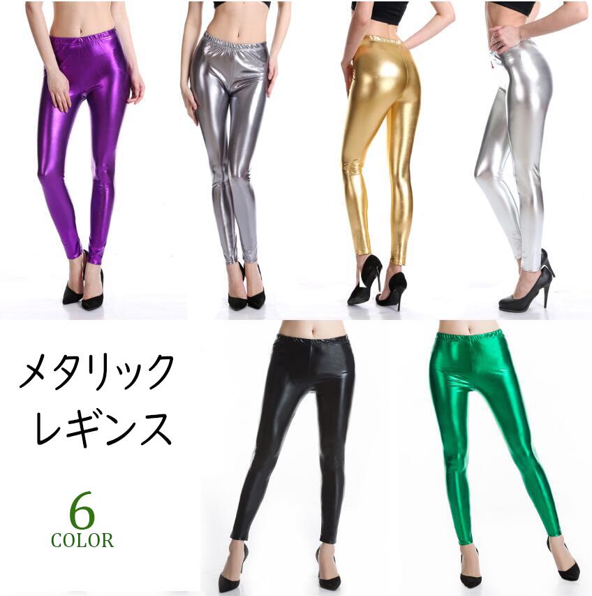 メタリックレギンス ダンスウェア衣装ロングパンツ 演出服タイトパンツ スキニーパンツ ステージ衣装パンツ舞台衣装レディース光沢シャイニー ハイウエスト クラブ細身ダンサーDSイベント長ズボ パーティー