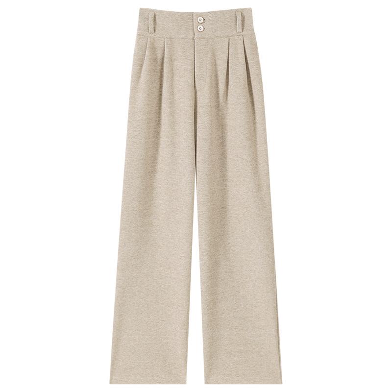 カジュアルパンツ レディース 秋冬 高腰 ワイドレッグパンツ 厚手 ゆったり ストレート あったか 暖かい 裏起毛 ポケット ポリエステル 無地 黒 ブラック グレー ベージュ S M L アイボリー