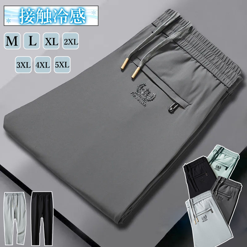 冷感パンツ メンズ アイスシルクパンツ ファスナーポケット カジュアルパンツ 接触冷感 薄手 涼しい 大きいサイズ 調整可能 ストレッチ 夏 春 秋 スポーツパンツ 速乾 UVカット おしゃれ 吸汗