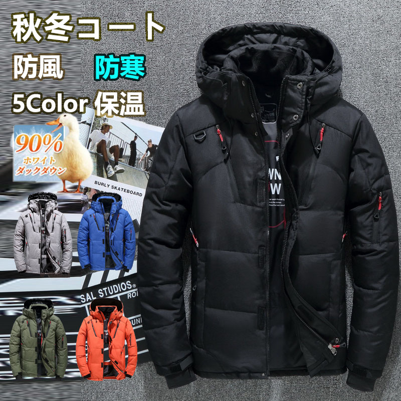 ダウンジャケット メンズ 50%ホワイトダックダウン フード付き おしゃれ 長袖 厚く 40代 50代 60代 カジュアル ジャケット 防寒 軽量 ダウンコート 秋冬 中綿 暖かい 厚手 カジュアル
