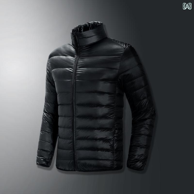 羽絨服 メンズ 男性用 ライトダウンジャケット ショート丈 スポーツウェア カジュアル 軽量 防寒 立襟 秋冬 ネイビー ワインレッド グレー ブラック