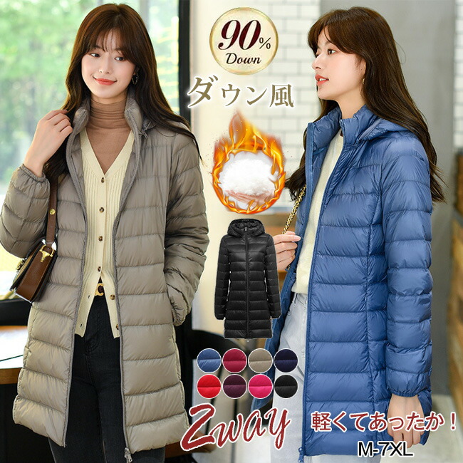 ダウンコート レディース 冬新作 ダウンジャケット 秋 冬 アウター コート ダウン 軽量 ライトダウン フード付き 大きいサイズ おしゃれ きれいめ 着痩せ 無地 暖かい 20代 3 軽い