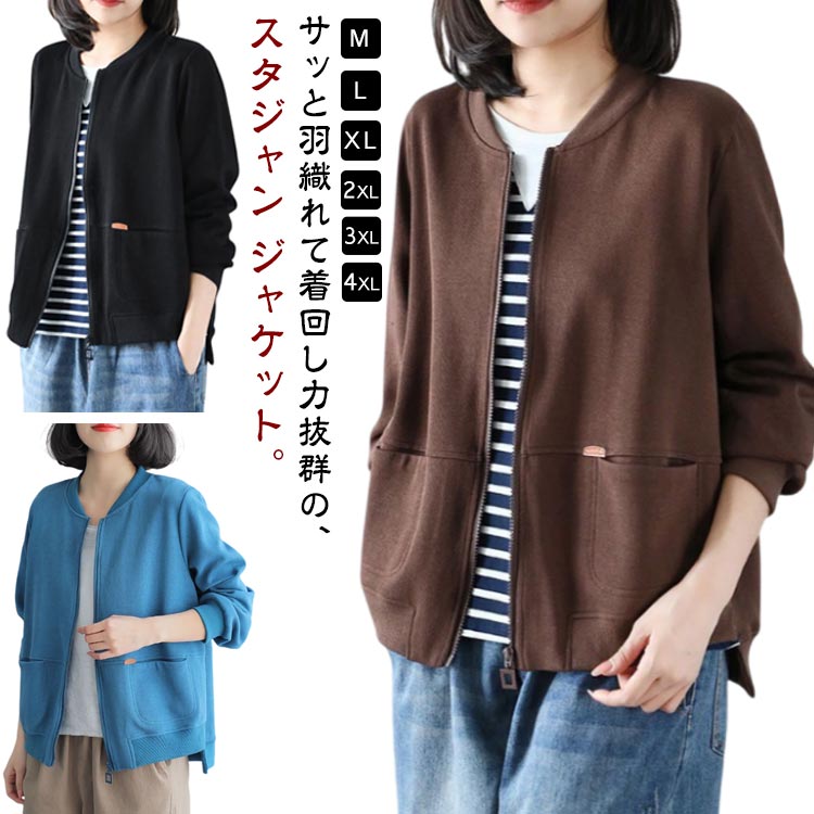 ジップアップ ジャケット パーカー 厚手 アウター フードなし 裏起毛 レディース ノーカラージャケット 羽織り カーディガン スウェット トップス 冬 ブルゾン 秋 ゆったり 暖かい 春