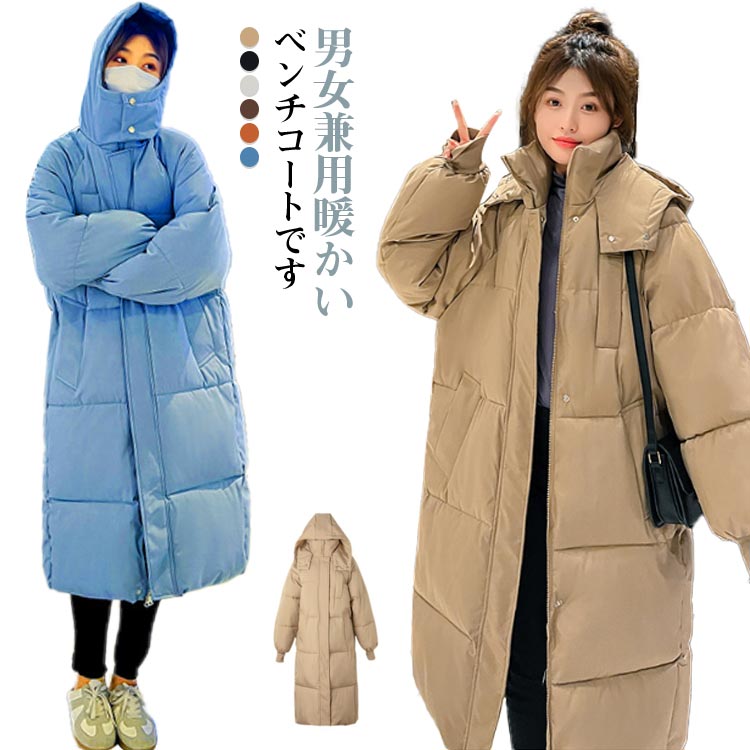 ベンチコート レディース 防寒着 ロングコート メンズ 中綿コート ロング丈 防寒コート キルティングコート 無地 厚手コート 中綿 アウター フード付き アウトドア 通勤 あったか お揃い ス 通学