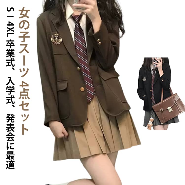 4点 黒 入学式 セット 卒業式 女の子 卒服 小学校女子 制服 JK 小学生 4点セット ブレザー 小学校 女子 スーツ 高校生 フォーマルスーツ ピアノ発表会 茶色 中学生