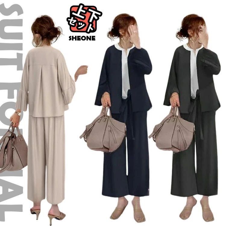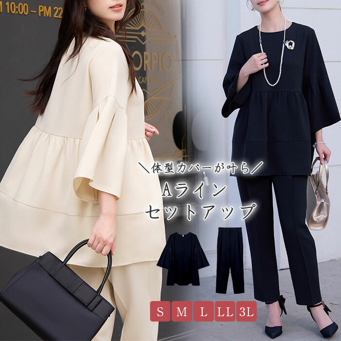 おしゃれ 50代 40代 30代 冬 秋 夏 春 ウエストゴム セットアップ 結婚式 フォーマルスーツ コーデ OL ィス 体型カバー