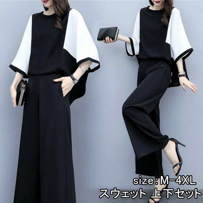 フレアトップス&テーパードパンツセットアップ レディス パンツスタイル お宮参り オケージョン 黒 紺 ゲスト 親族 服装 おしゃれ 華やか オフィスカジュアル 通勤