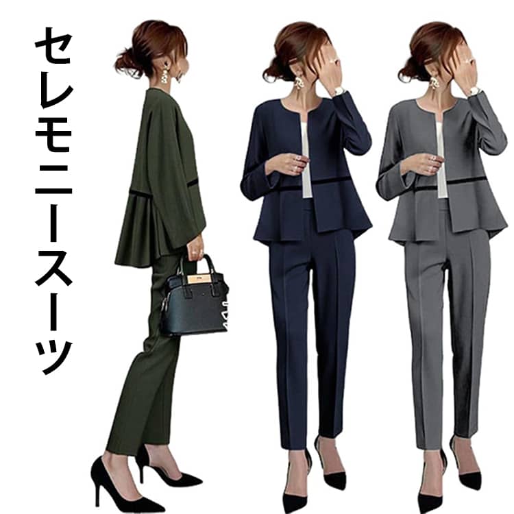 トップス+スリムパンツ 2点セット パンツスーツ レディース セットアップ 入学式 卒業式 母 ママ 入学式 卒業式 入園式 卒園式 結婚式 スーツ ママ 七五三 お宮参り スーツ