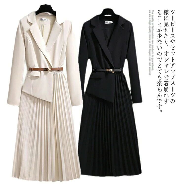 スーツ セットアップ ワンピーススーツ レディース 春 秋 ワンピース ジャケット 上下セット 長袖 Aラインワンピース テーラードジャケット 大人 ビジネス カジュアル 女性らしい オシャ シンプル