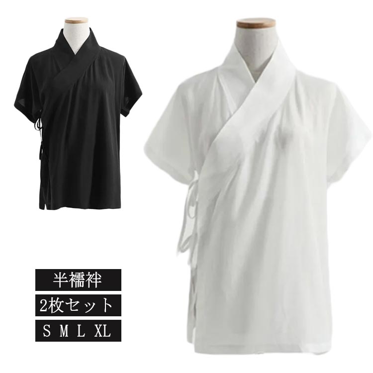 シャツ 2枚セット 半襦袢 インナー 肌着 着物 浴衣 半襟 半 襦袢 レディース 薄手 和装 初心者 衿付き 速乾 下着 きもの 肌襦袢 女性 襟付き 快適 白 黒 さら 着物下