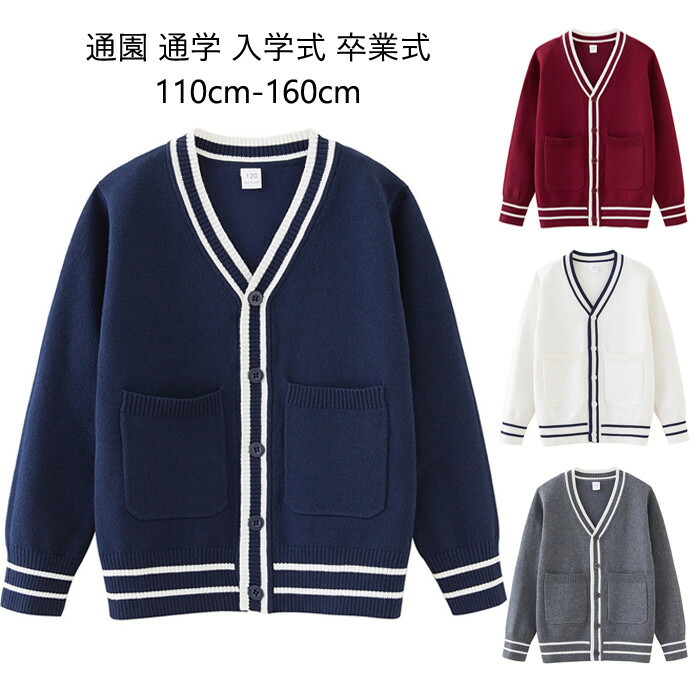 一部即納 カーディガントップス カーディガン スクールカーディガン 男の子 女の子 制服 ゆったり ネック 前開き ネイビー レッド グレー ホワイト 送料無料