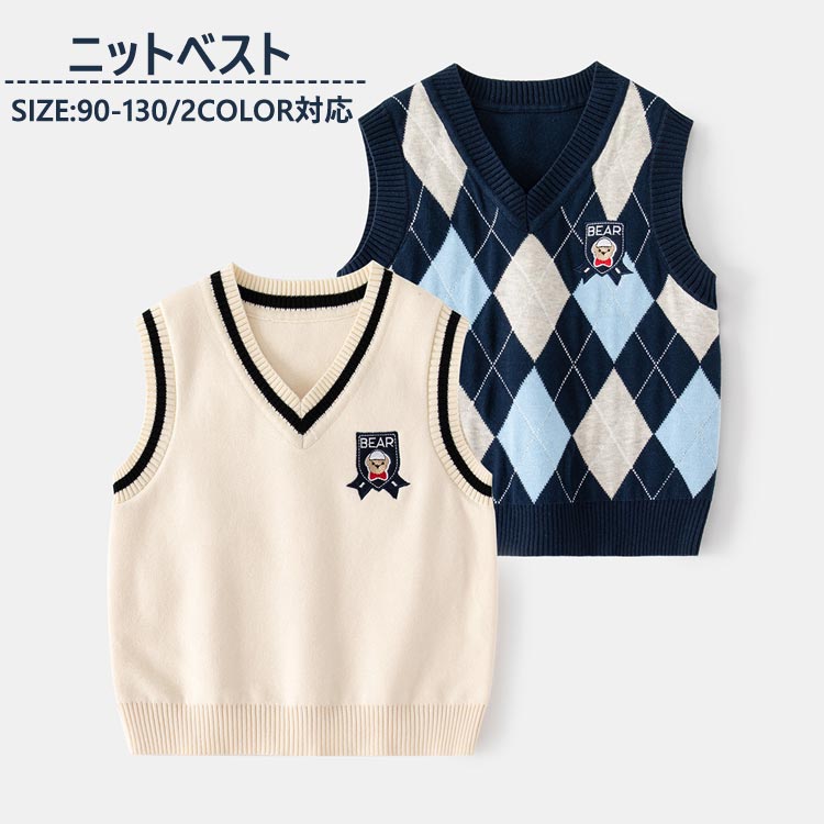 キッズ ニットベスト 女の子 男の子 セーター ニット 子供服 スクールベスト 制服 トップス プレゼント ギフト ベビー 通学 小学生 中学生 カジュアル ガールズ 春秋 上着 普段 アウターウェア