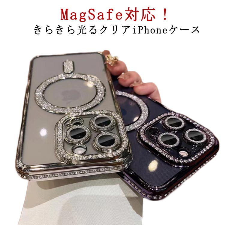 iPhone16 ケース iPhone 16pro Magsafe対応 きらきら ラインストーン ラメ 韓国 可愛い クリアケース iPhone16Plus iPhone15 かわいい